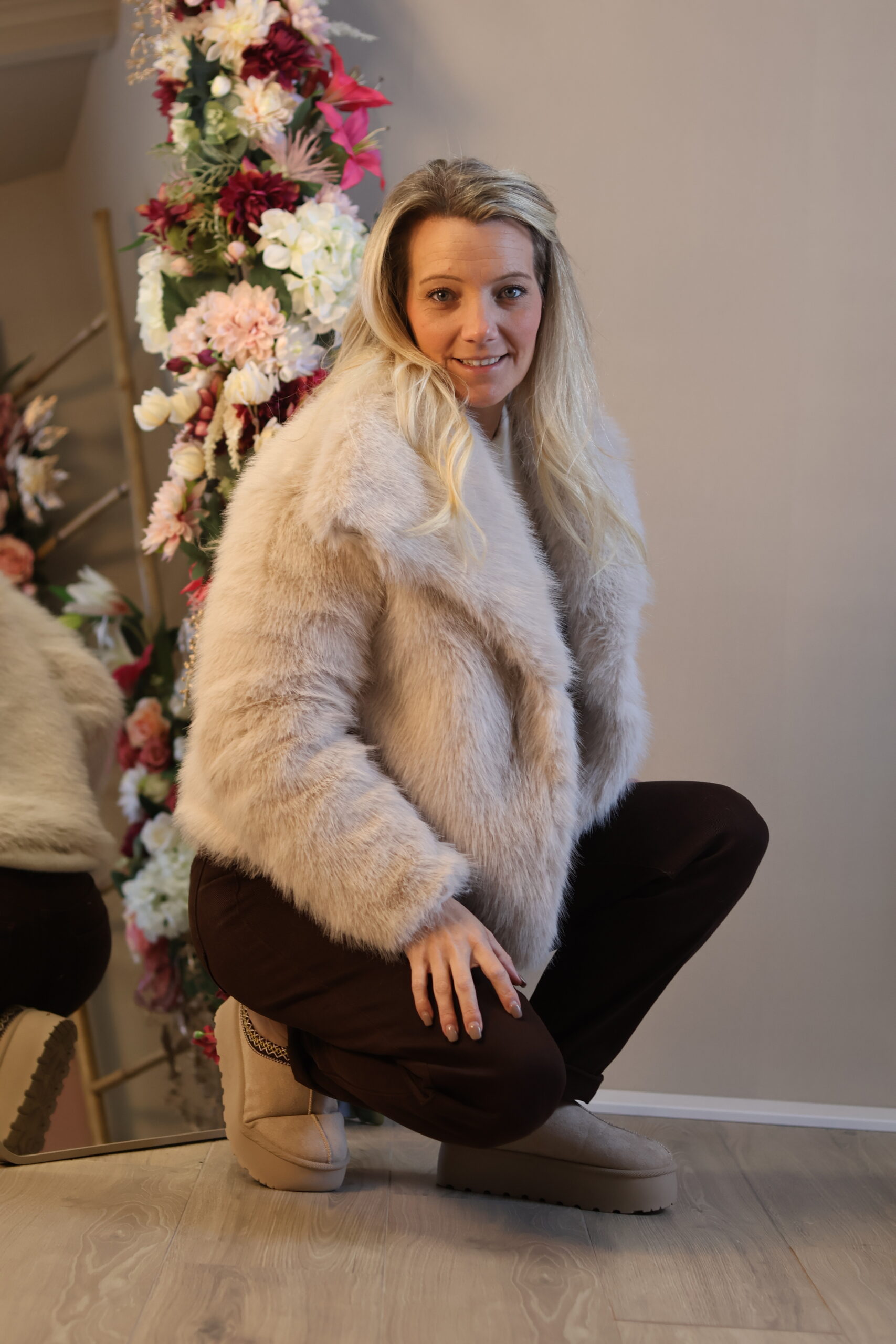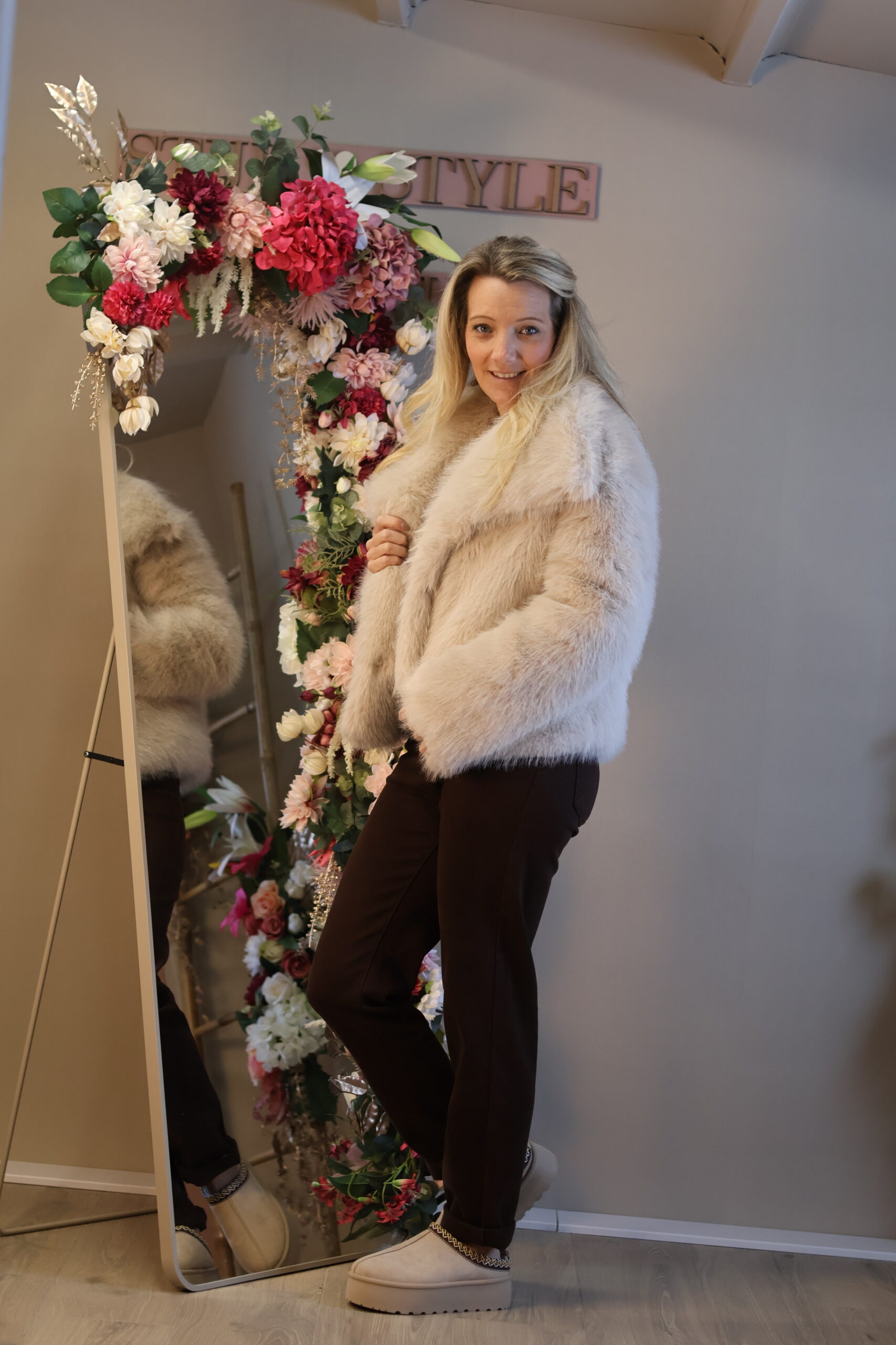 Luxe, zachte faux fur jas met een elegante uitstraling. Heerlijk warm, stijlvol en perfect om elke outfit een chique touch te geven.