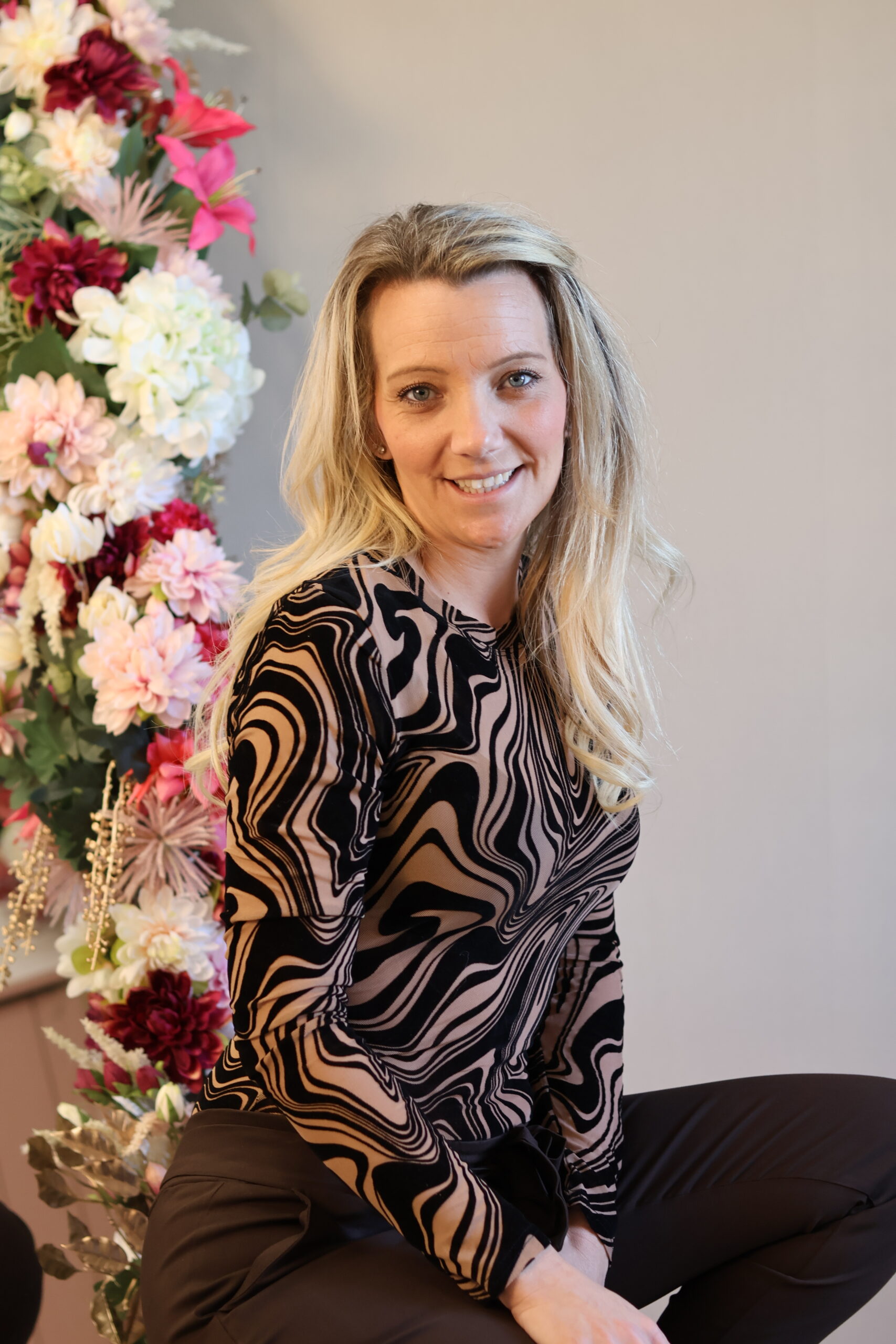 Stijlvolle body met een opvallende abstracte print in warme tinten. Comfortabel, vrouwelijk en perfect te combineren voor zowel een casual als geklede look.