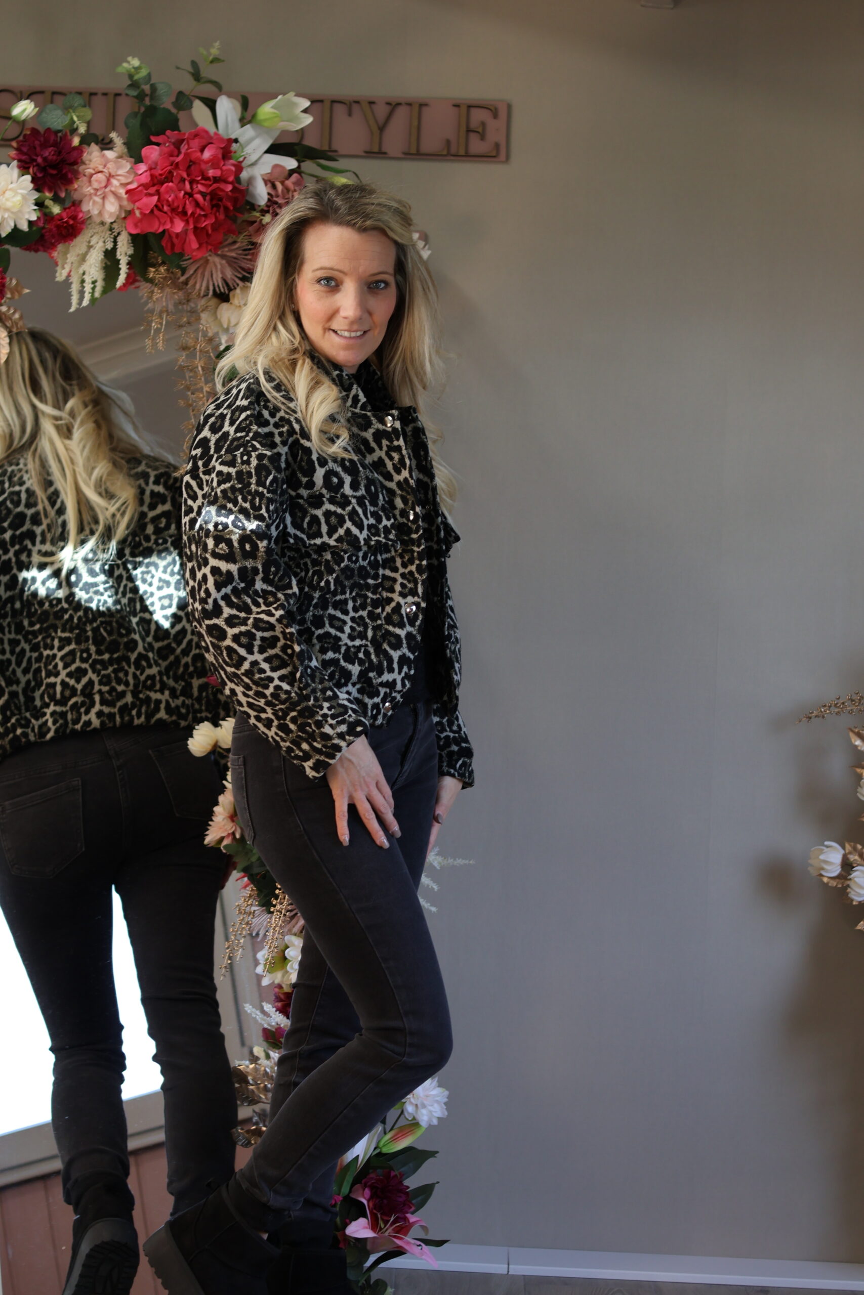 Stijlvol jasje met trendy leopardprint, een vrouwelijke pasvorm en een comfortabele stof. Perfect om elke outfit een modieuze boost te geven.