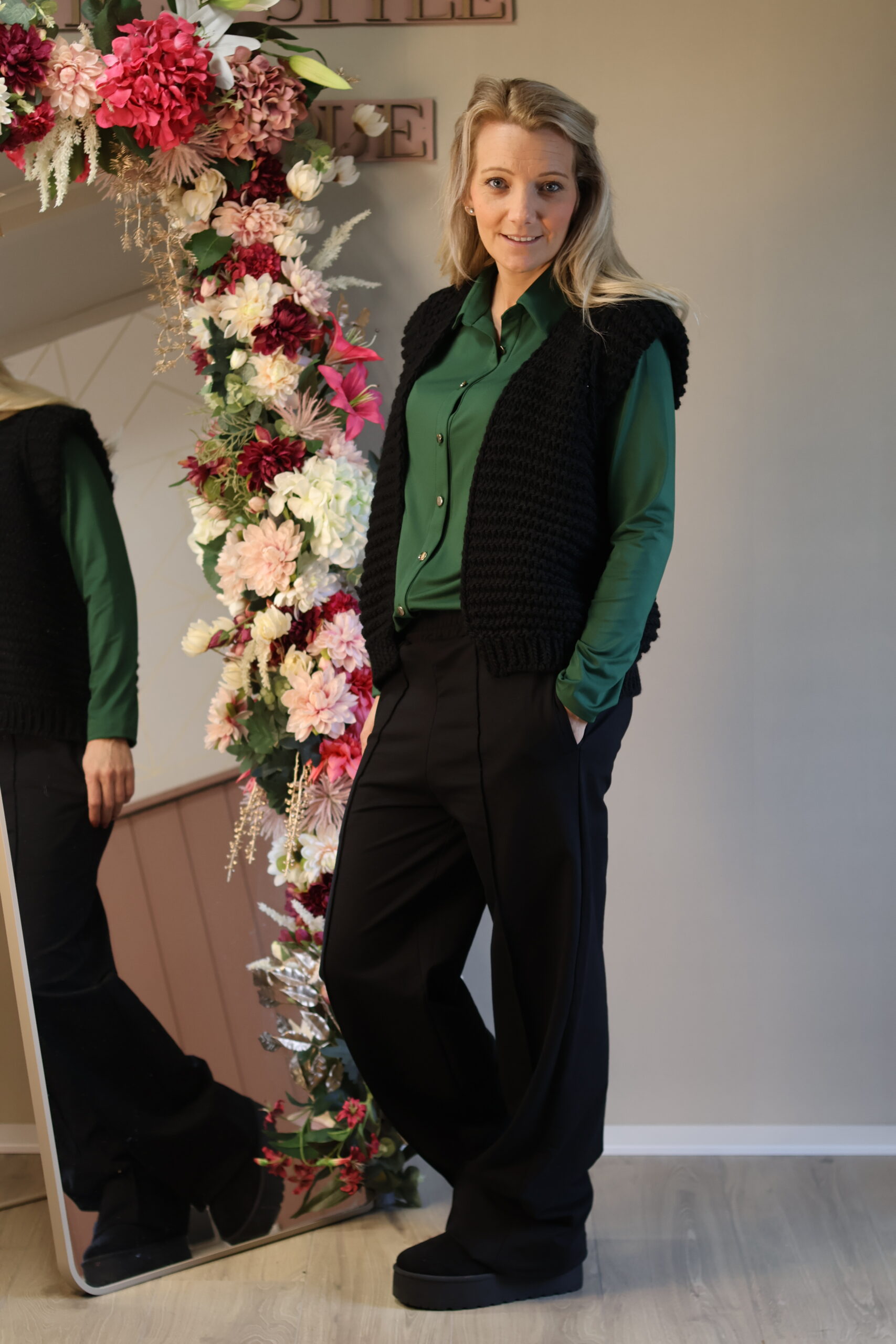 Draag het gilet over een blouse voor een vrouwelijke, geklede look of combineer het met een basic top voor een meer casual stijl. Het mouwloze model maakt het ideaal voor laagjes en geschikt voor meerdere seizoenen. Een veelzijdig item dat comfort en stijl perfect samenbrengt.