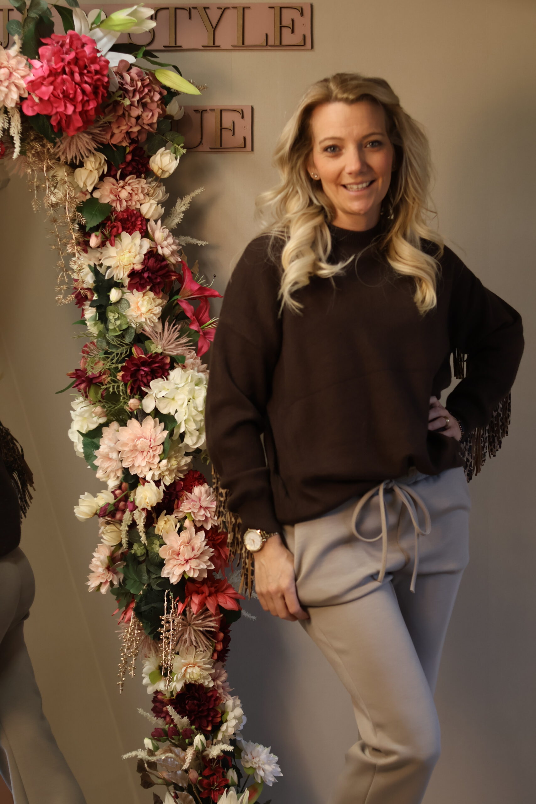 Deze bruine trui is een echte eyecatcher. Deze trui straalt luxe uit en wordt perfect gecombineerd met de opvallende leopard details en speelse franjes die doorlopen over de rug én langs de armen. Dit geeft de trui een unieke, trendy uitstraling met een subtiele western touch.